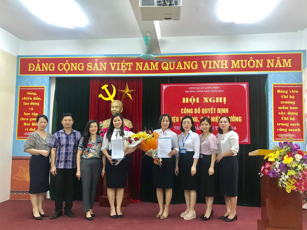 Hôm nay, ngày 24/3/2023 Trường MN Tuổi Hoa tổ chức Hội nghị công bố Quyết định bổ nhiệm chức danh Hiệu trưởng – Phó hiệu trưởng.