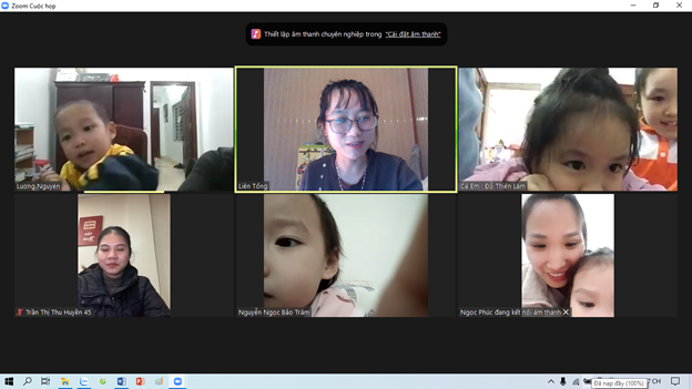 Hòa chung không khí vui vẻ trước thềm năm mới 2022, các cô và các bạn học sinh lớp mẫu giáo bé C3 đã có những phút giây trò chuyện vô cùng thú vị. Các con có mặt rất sớm tại phòng zoom của lớp và kể cho các cô nghe những hoạt động thường nhật của mình khi ở nhà nghỉ dịch. Bạn Thiên Lam, Tùng Dương đã hát tặng cô và các bạn những bài hát rất hay để chúc mừng năm mới. Các bạn nhỏ rất hào hứng nói về những dự định của mình trong thời gian đón tết dương lịch sắp tới.