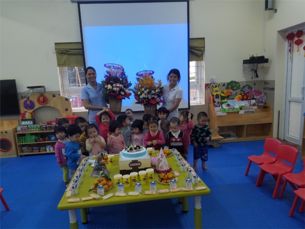 Trong một năm học có rất nhiều ngày chủ điểm nhưng có lẽ ngày chủ điểm ý nghĩa nhất chính là ngày nhà giáo việt Nam 20-11.Trong không khí của toàn trường .Cô và trò của lớp nhà trẻ D3 đã tổ chức chương trình “Liên hoan văn nghệ chào mừng ngày nhà giáo việt Nam”. Thật là ý nghĩa ,các con rất vui và hào hứng khi được bày tỏ tình cảm yêu mến của mình đến cô giáo qua chùm ca khúc “Cô và mẹ” , “Đi nhà trẻ” , “Em ngoan hơn búp bê” , “Bé khỏe bé ngoan”, “ Vui đến trường”. Đây cũng là bước đầu hứa hẹn một môi trường tràn đầy tình yêu thương, một mái nhà chung ấm áp với bao nhiêu tiếng cười của trẻ thơ. Các cô xin chân thành cảm ơn các con, cảm ơn bó hoa tươi thắm và những lời chúc tốt đẹp của ban phụ huynh dành tặng các cô. Và cuối cùng là buổi tiệc nhỏ của cô và trò lớp nhà trẻ D3:
