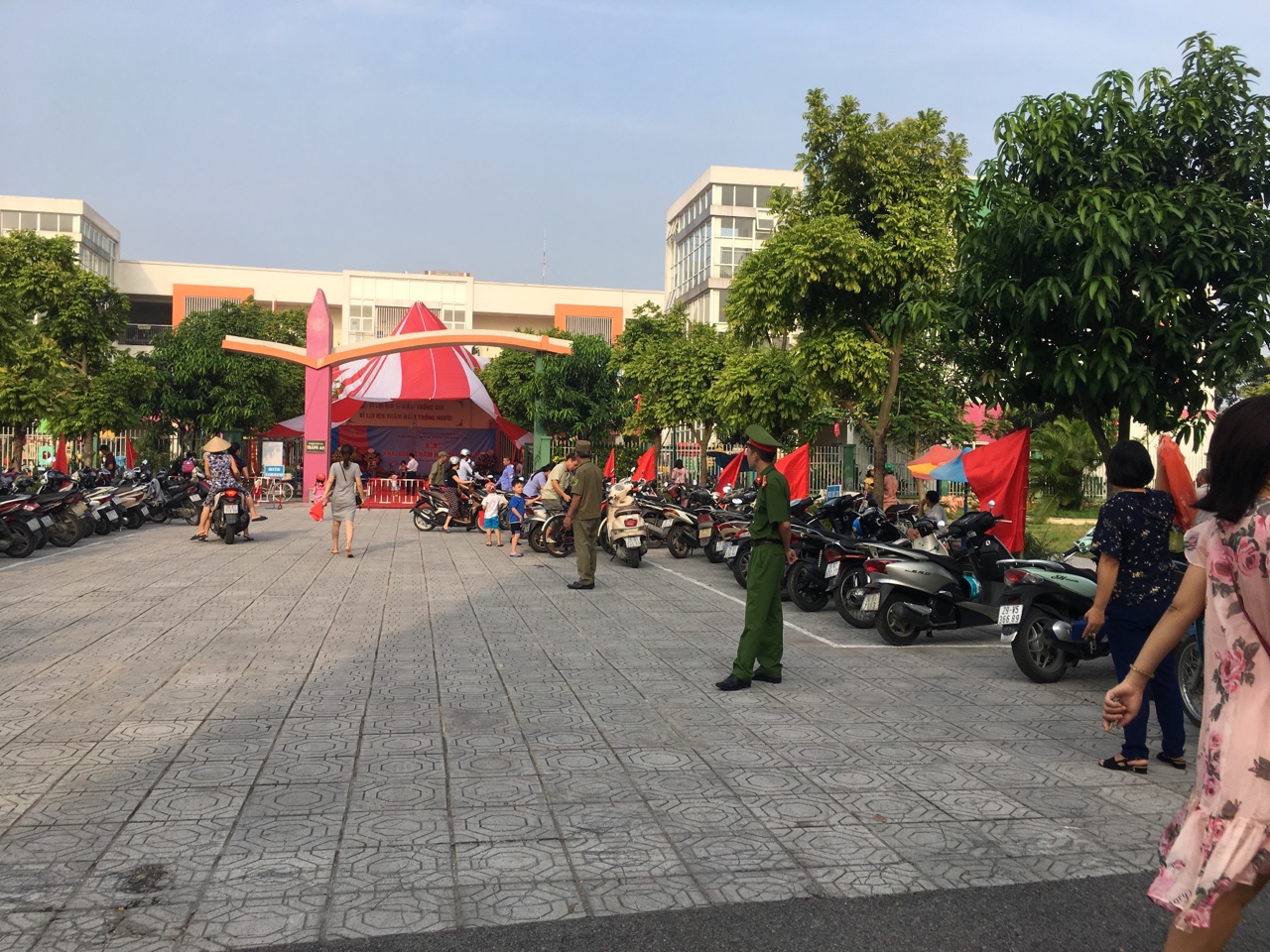 Sáng nay ngày 5/9/2019 trong không khí cả nước tổ chức ngày khai giảng năm học mới 2019 – 2020. Nhà trường Tràng An vinh dự được Lãnh đạo UBND, Công An Phường Giang Biên quan tâm gửi hoa chúc mừng và cử các đồng chí công an, đội trật tự của phường đến phối kết hợp với tổ bảo vệ để phân luồng xe và hướng dẫn các bậc phụ huynh để xe đúng nơi qui định tránh ùn tắc giao thông.